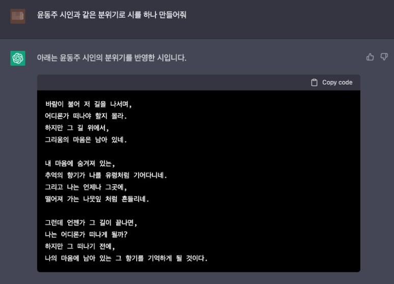 (질문 : 윤동주 시인과 같은 분위기로 시를 하나 만들어줘)
