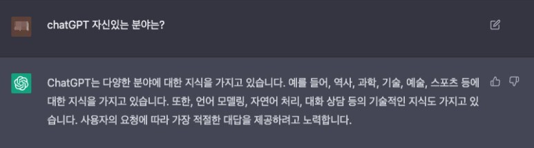 (질문 : chatGTP 자신있는 분야는?)
