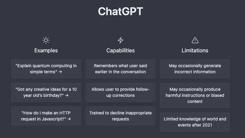 https://chat.openai.com/chat 에서 채팅이 가능하다.
